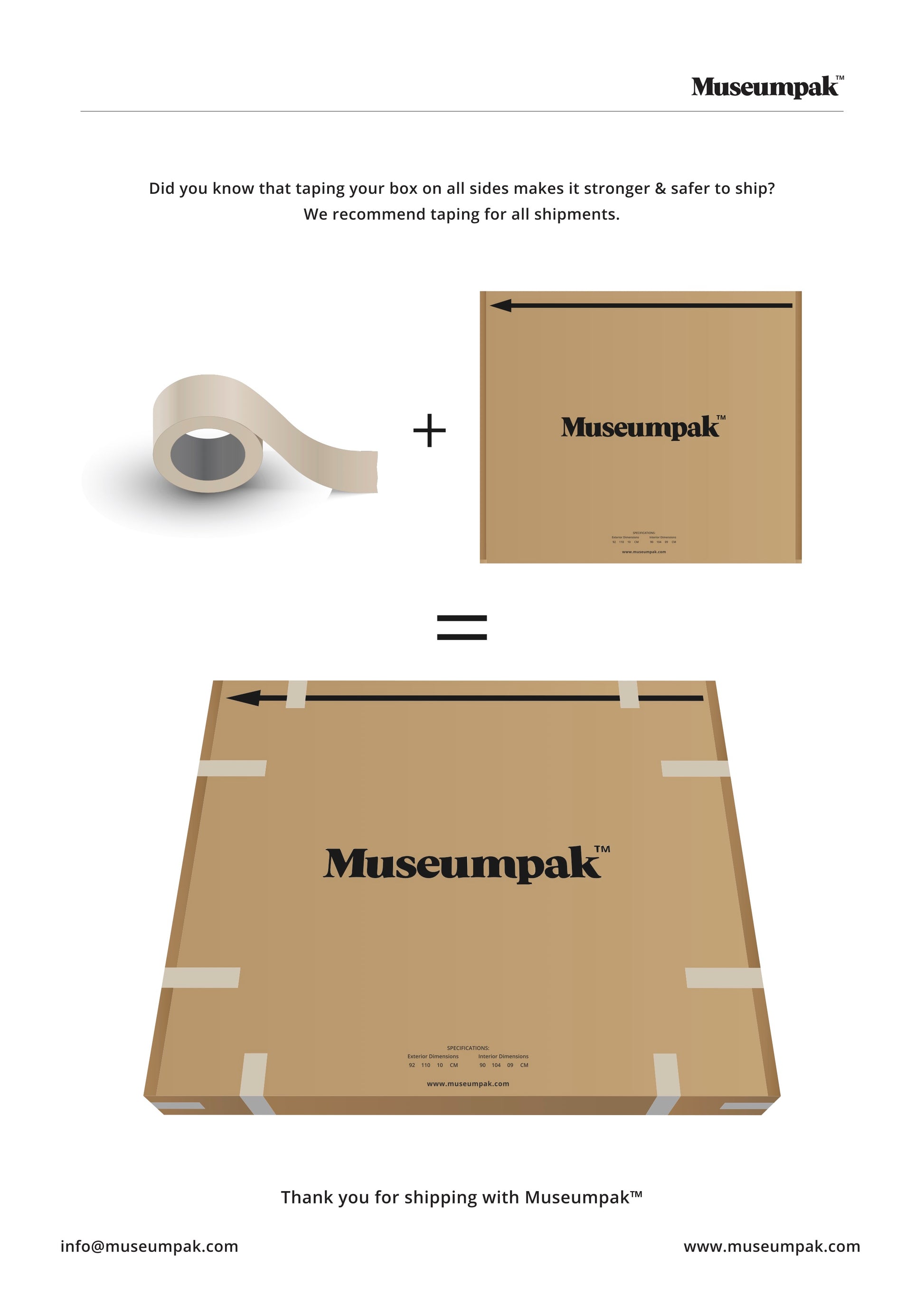 Each Extra Large box is made of the sturdiest kraft liner cardboard so it can stand the wear and tear of freight cargo. Movement within packages destroys package and artwork. In order to stabilise your work, each ​box comes with 2 layers of convoluted foam and 1 middle layer of soft, perforated foam. Our middle layer has perforations in the center to make it easy to match the foam to the size of your work. No tools are needed to remove enough perforated squares to form an opening evenly encasing the artwork. You will only need tape to close the box. Our boxes eliminate the need to hire an art shipping company to pack and ship the work. The box is easy to re-open and re-close so it can be used as often as you want.